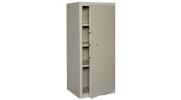 Armadio monoblocco di media sicurezza, costituito con lamiera spessore mm. 2 sportello con cerniera interna e profilo antistrappo dal lato cerniera.